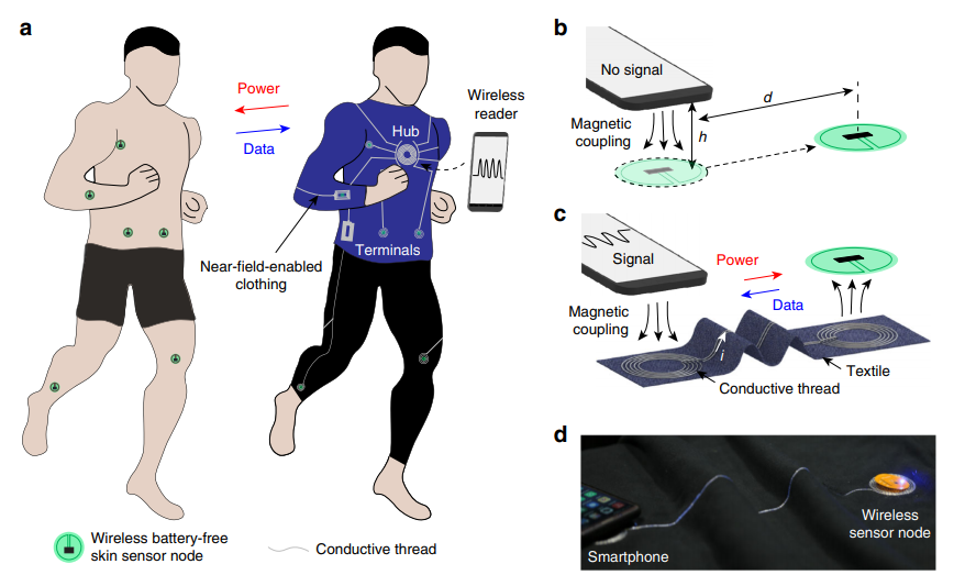 Rongzhou Lin et al. Wireless battery-free body sensor networks using near-field-enabled clothing, Nature Communications (2020). DOI: 10.1038/s41467-020-14311-2
