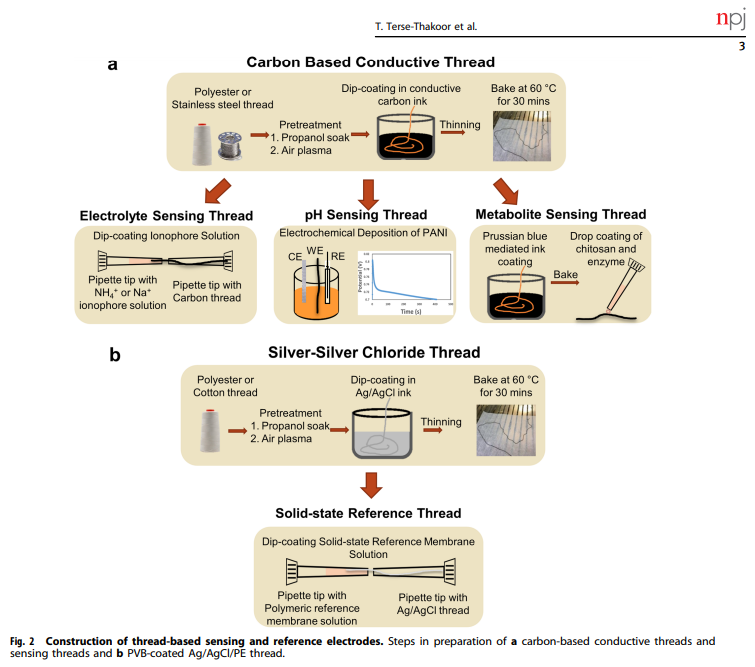 Terse-Thakoor, T., Punjiyam, M., Matharu, Z., Lyu, B., Ahmad, M., Giles, G.E., Owyeung, R., Alaimo, F., Baghini, M.S., Brunyé, T.T., and Sonkusale, S. "Thread-based multiplexed sensor patch for real-time sweat monitoring" NPJ Flexible Electronics 2020 July 28; DOI: 10.1038/s41528-020-00081-w